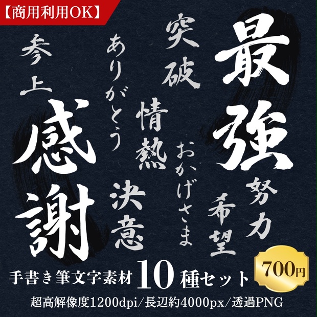 【商用OK】動画・漫画・デザインに!超高解像度「筆文字素材セットVol.1」をBoothでリリースしました!