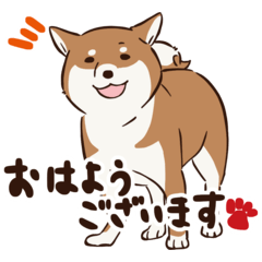 柴犬らしい仕草と、ゆるい手書きの文字が特徴です。